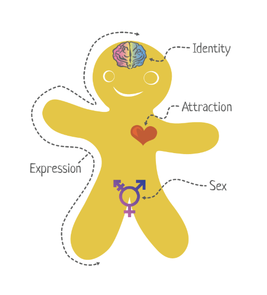 Sam Killermann created the genderbread person in 2011, describing it as a “cute, approachable model for understanding the social construction of gender. He waived copyright in 2013.
